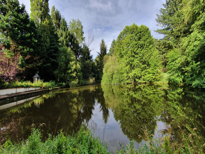 Large gardens with a lovely view over the lake.